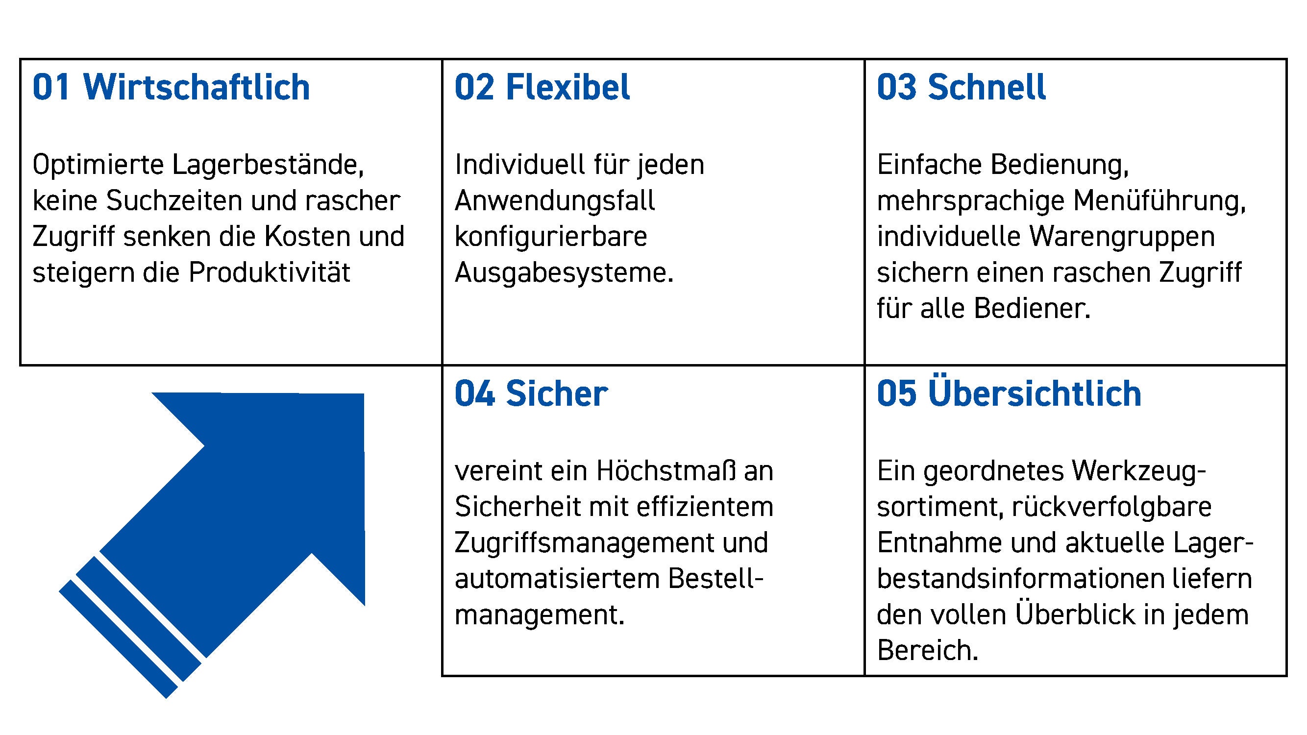 „Diese Automaten sind so ausgerichtet, dass sich bei der Entnahme wirklich auch nur das Fach der benötigten Ware öffnet. Auf alle anderen Fächer hat der Mitarbeiter keinen Zugriff in diesem Moment. Hört sich eventuell nicht so spannend an aber wir haben durch diese Funktion unseren Materialverbrauch um 35% gesenkt!“